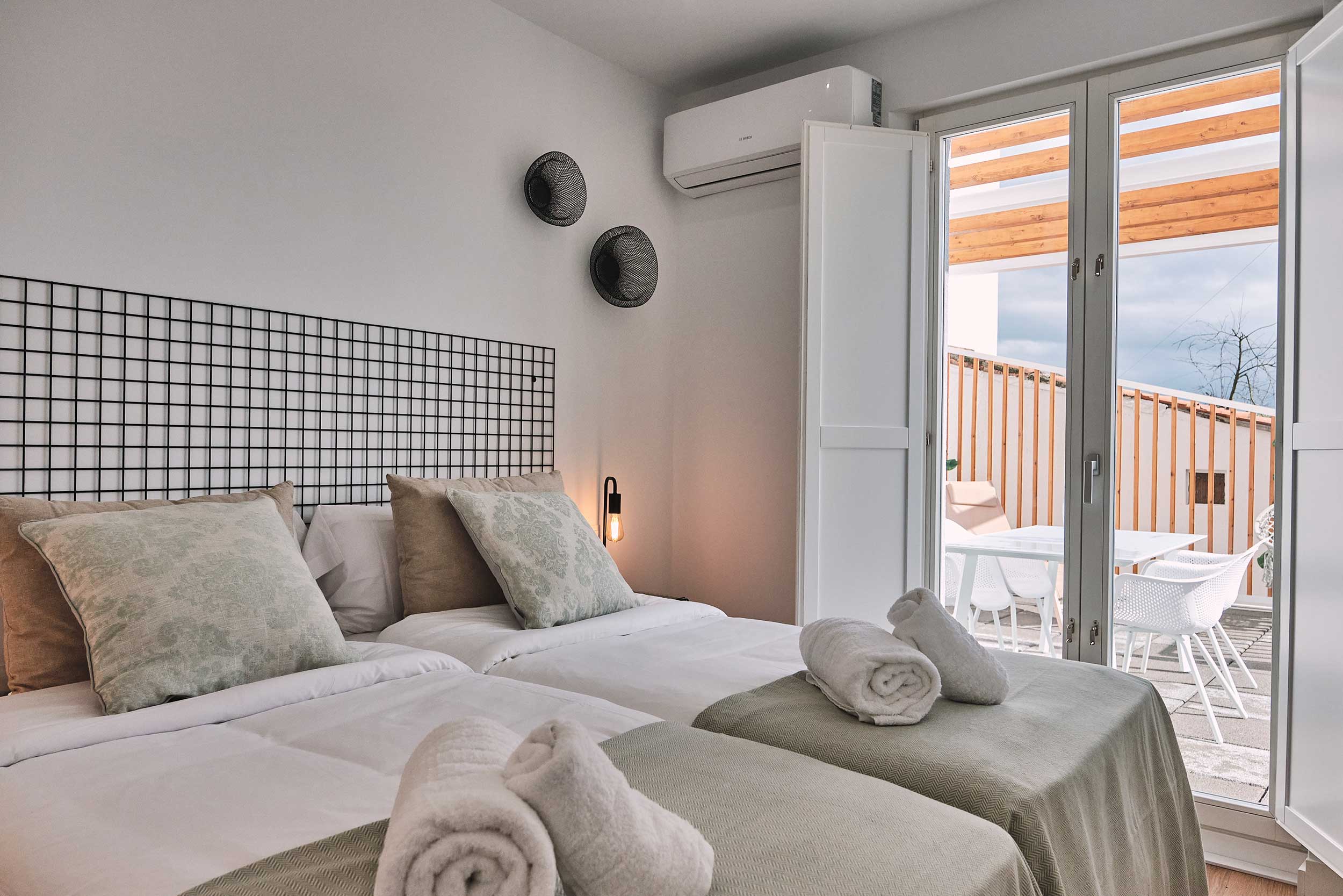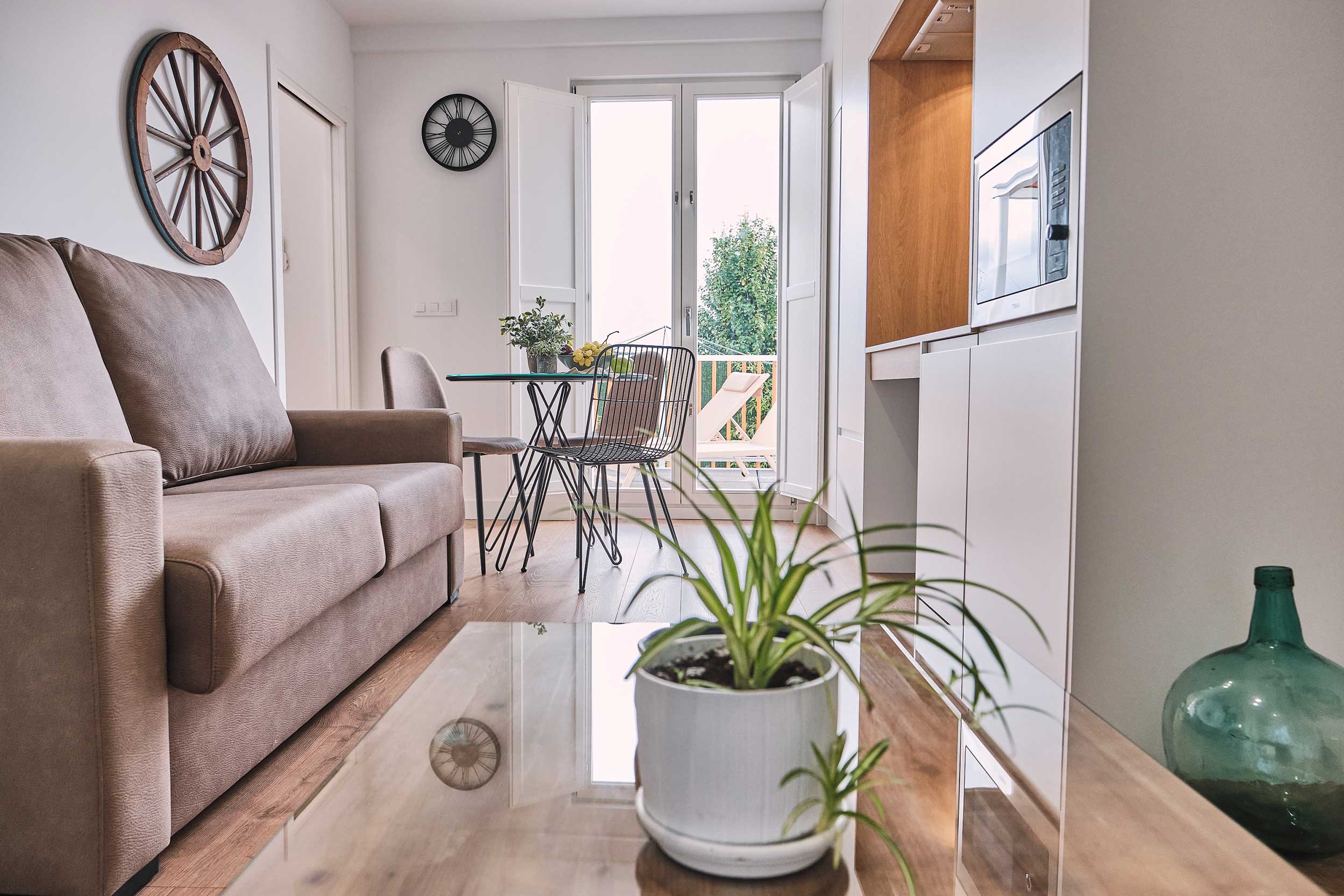 Nuestro apartamento familiar por excelencia, ideal para grupos grandes o dos parejas. Cuenta con dos dormitorios, uno con una cama doble grande y otro con dos camas individuales. Además, la sala de estar dispone de un sofá cama.
